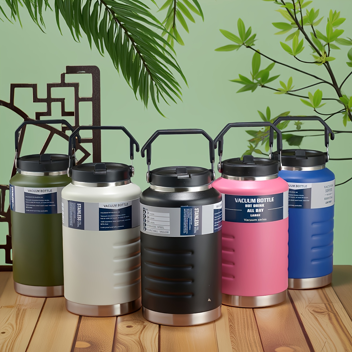 Stainless Steel Vacuum Insulated Water Bottle with Double-Wall Insulation, Leakproof Lid & Handle – Thermal Cup for Camping, Hiking, Office, Gym – Keeps Drinks Hot/Cold for Hours, Easy-Clean Design – Ideal for Outdoor, Travel, Home Use – Available in Black, Green, Blue, Pink, Beige, Outdoor Hydration, Sleek Cylindrical Shape, Durable Construction, Vacuum Flask For Hot And Cold Drink, Vacuum Flask For Hot Drink, Vacuum Flask For Cold, Vacuum Flask Hot, Thermal Mug, Coffee Travel